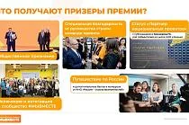 Кроме того, они получат общественное признание, грант на реализацию инициативы, путешествие по России от программы «Больше, чем путешествие», информационную поддержку от партнёров. Вместе с этим, они смогут пройти обучение в Центре Знаний «Машук», Мастерской управления «Сенеж», Университете креативных индустрий от арт-кластера «Таврида».