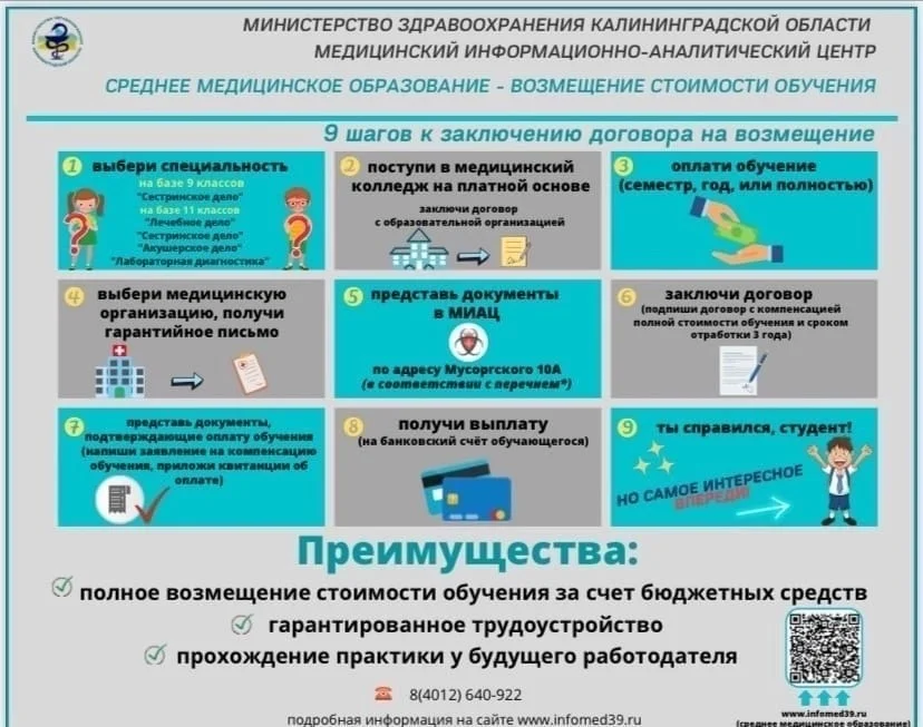 Более подробная информация размещена на сайте Министерства здравоохранения Калининградской области https://kadry.infomed39.ru/training/