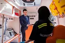 Губернатору показали оснащение автомобилей – электрокардиографы нового поколения с возможностью дистанционной передачи данных пациента старшему врачу на станцию скорой помощи, современные дефибрилляторы, реанимационные наборы и т.д.