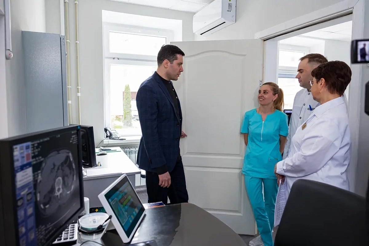 Также губернатор побеседовал с семейной парой врачей-рентгенологов – Сергеем и Галиной Долматовыми, которые работают на новом КТ. Доктора переехали в регион в конце января из Воронежа, в ближайшее время получат единовременные подъемные. В течение полугода больница будет оплачивать им аренду жилья.