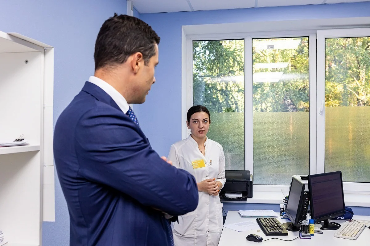 «Здесь когда-то было старое помещение аптеки, оно пустовало, и мы договорились с муниципалитетом, чтобы его отдали в регион, и мы сделали там детскую поликлинику, – пояснил Антон Алиханов. – Один участок сохранили по старому адресу на Зеленой, потому что детей в городе стало достаточно много. Ставки педиатров все заполнены. Пообщался с врачами, все довольны работой и тем, что для них было сделано».