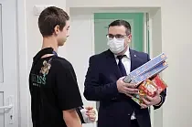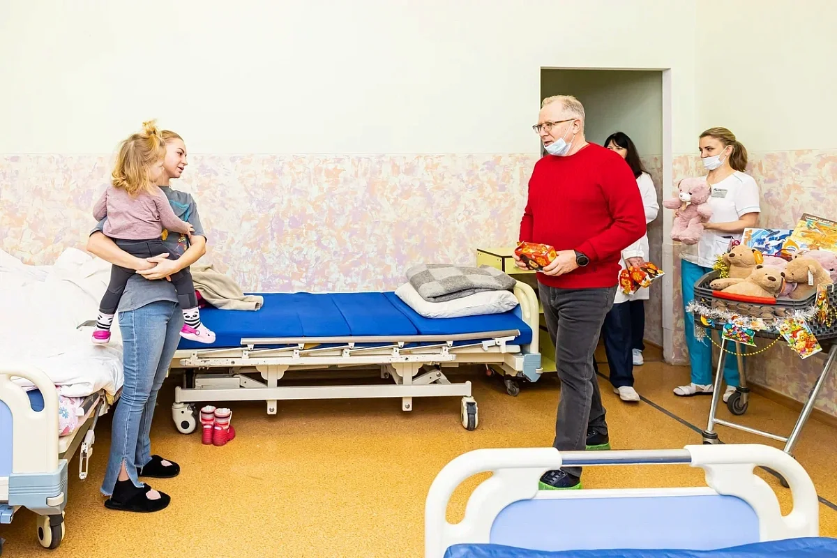 Губернатор вручил новогодние подарки юным жителям области, которые получают лечение в отделении неврологии, отреконструированном по его поручению в 2021 году, и нейрохирургии, которая располагается в новом корпусе больнице, возведенном в рамках нацпроекта «Здравоохранение» и открытом в марте этого года.