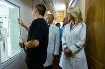 Рабочий выезд по лечебным учреждениям региона Татьяны Голиковой в сопровождении первого заместителя Министра здравоохранения РФ Виктора Фисенко начался с осмотра нового онкологического центра. Как пояснил врио губернатора Калининградской области Алексей Беспрозванных, объект введен в эксплуатацию, все лицензии на медицинскую деятельность получены. Поликлиника и вся диагностическая служба онкоцентра уже работают в полном объеме, ранее они функционировали в тестовом режиме: с конца мая они приняли более 5 тысяч пациентов.