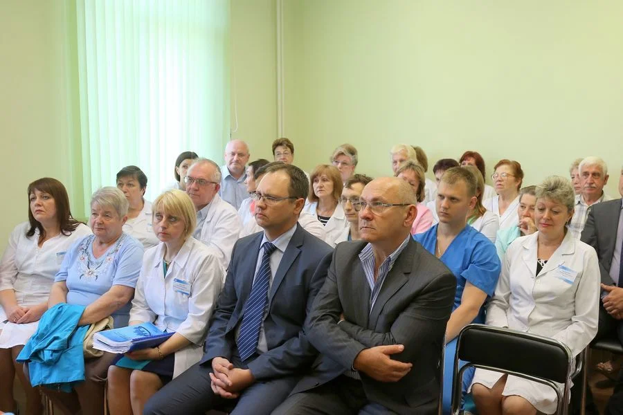 С апреля этого года в здании амбулаторно-поликлинического отделения Черняховской центральной районной больницы на улице Ленина начались преобразования по принципам «бережливого производства». Исполняющий обязанности главного врача ЦРБ Владимир Шавейников продемонстрировал Антону Алиханову преимущества работы «открытой регистратуры», кабинет под будущий call-центр.
