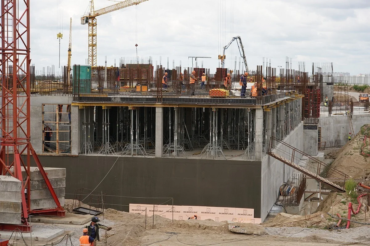 На вопрос главы региона о дальнейшем наращивании числа строителей, представитель генподрядчика сообщил, что уже с 5 августа здесь только от одной компании-субподрядчика будет в общей сложности больше ста человек. Через полтора месяца они приступят не только к возведению монолита, но и обустройству перегородок внутри одного из блоков.